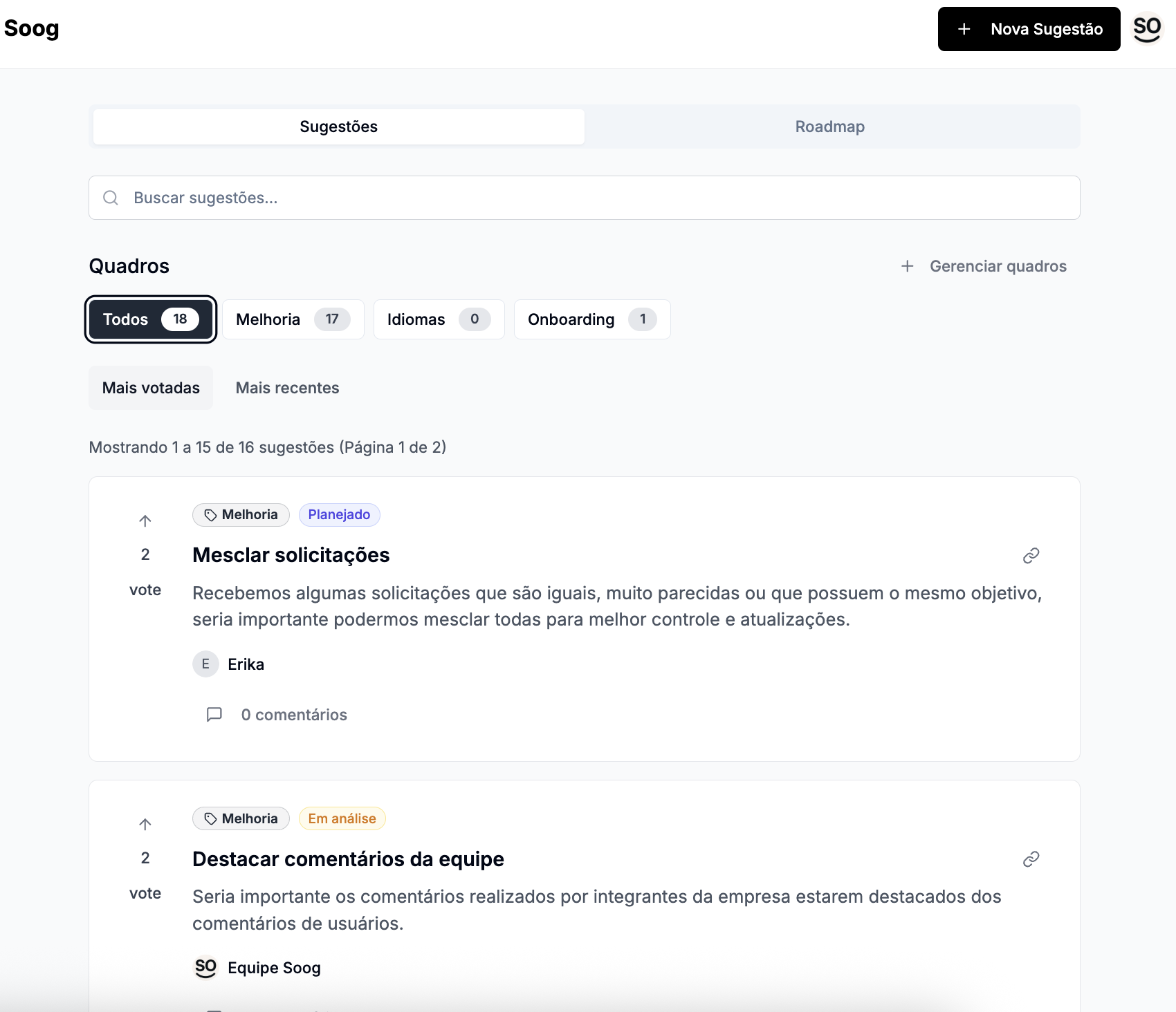 Somente usuários do seu SaaS podem criar e comentar sugestões. Você pode deixar que apenas eles vejam solicitações e Roadmaps.