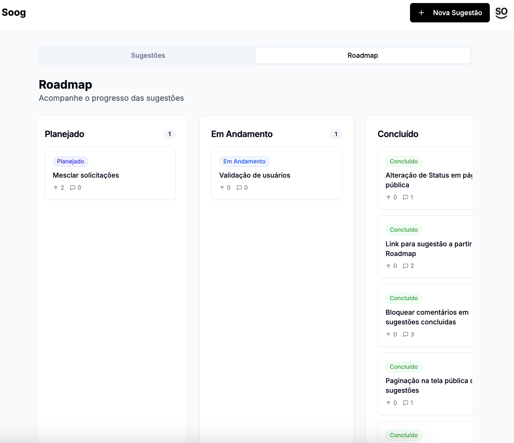 Colete sugestões, priorize ideias e acompanhe o progresso do seu SaaS em um só lugar.
