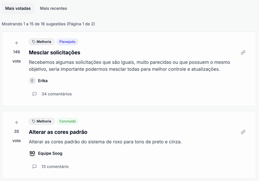 Priorize as novas features com base na necessidade real de seus usuários permitindo que eles votem nas melhores sugestões.